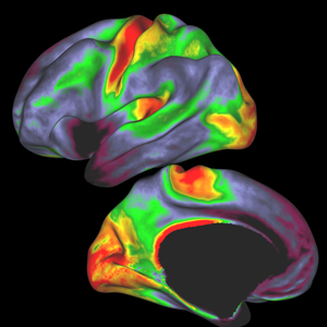 "Scientists have found a way to use MRI scanning data to map myelin, a white sheath that covers some brain cell branches. Such maps, previously only available via dissection, help scientists detemine precisely where they are at in the brain." (Graphic Via David Van Essen)
